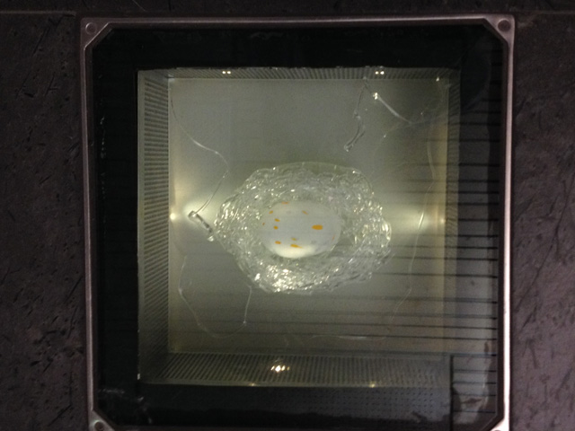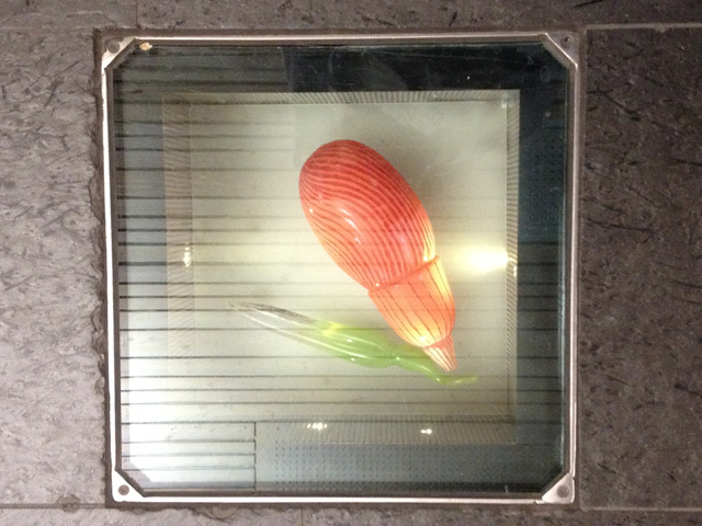- ArtInFloor1 In the floor in the Baggage area, was art! This blown glass piece looks like a fruit. My crummy photo does not convey how lovely it is.
