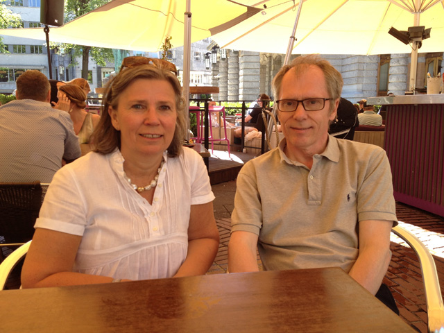 - My friend, and prolific author and knitwear designer Tove Fevang met me at the airport and we had a lovely time at her house for a few days. (Her website is, of course, in Norwegian but you can get an idea of her scope, which includes almost 20 books! She designs knitting, quilting, embroidery, and crochet.) Here she is with her dear husband Geir, a talented photographer and computer whiz!